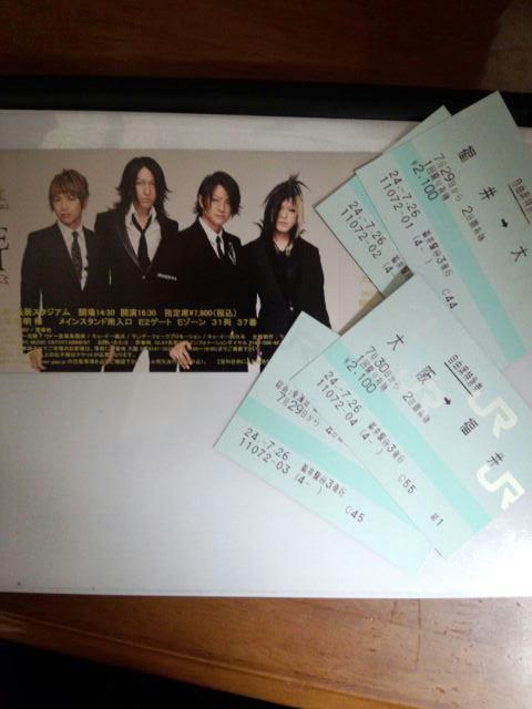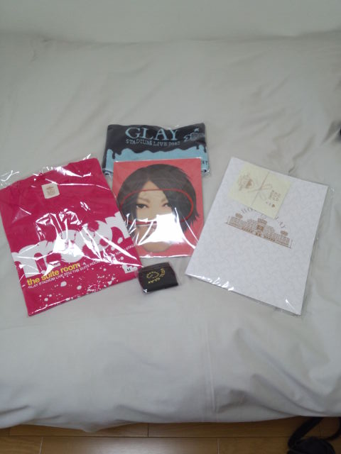 ライブ直後にレポをあげるとか言いながら酒飲んでskpeして寝てました!! でもライブ終了後は暑くて飲まなきゃやってられなかったんDEATH!! 終了後は珍しく飲みました。一人で!! さ、サーボンさん。 そんなこんなでライブレポト、始めますよ。 いつもの事ながらうろ覚えですが、ご了承を。 ドドリアさんは足の爪でも切っていなさい。ホホホ OPENING~GLAY登場 HISASHI「TERU、チャラチャラしすぎ!!…いいなぁ」にワロタ 自分はサブステージ側だったんだけど、 最初メインステージにJIROしか出てこなくて何事!?と思った …あ、ちなみに自分はスタンドのE2ブロックです。 01.SHUTTER SPEEDSのテーマ 02.everKrack 03.彼女の”Modern...” 04.千ノナイフガ胸ヲ刺ス この流れは意外すぎた。まさにいい意味でのサプライズ パーティー!! あとエヴァクラの時にPVに映ってた永野氏が客席に映ってて 周りの人「永野wwwww」「ちょwww永野さんwwwwww」みたいなテンションだったw っていうかモダン~千ノナイフとかなんという俺得!! 05.Route 5 Bayshore Line(仮) 06.Blue Jean 新曲は爽やかな曲だった。SummerFMみたいな感じ。 そして8年ぶりのBlue Jean!!GLAYの夏曲の中で一番好きだなぁ。 GLAY メドレー CASE OF HISASHI 07.neuromancer~Cynical~アイ~GIANT STRONG FAUST SUPER STAR HISASHI曲のメドレー。略してヒサレー(無理ある… 最初のneuromancerでテンションだだ上がり。一度は聴いてみたかった!! あとジャイアントストロングでTERUがJIROの肩を組んでコーラスしてるのがよかった。 HISASHI SOLO 08.20th Century Boy~RHAPSODY~サバイバル~Beat it~Walk This Way~Bad Feelin'~Layla~ROCKET DIVE!! 20世紀少年の曲で始まったから周りの人が人差し指を立ててたからワロタww そして最後にまさかのHISASHIボーカルでのROCKET DIVE!! これが一番意外だったかも知れない。イエローハート使ってたし… 髪もピンクに染められていたし、すごい盛り上がった。 09.STARLESS NIGHT 直前のMCでTERUが「空の上にいるhideさんがー」みたいな事言ってるから 周り(勿論俺を含めて)はてっきりMISERYをやるもんだと思ってました(^ω^) まぁこの曲も好きですけど、前振り長ぇ!! GLAY メロデー CASE OF TERU 10.Lock on you~BACK-UP~BLAST~Little Lovebirds~週末のBaby Talk 途中のLittle Lovebirdsが良かった。 HELLO MY LIFEとかやって欲しかったなー 11.Run 12.生きてく強さ 13.FAME IS DEAD Runでは花道を一周するTERUさん。40代なのにすげえよ…最後の方は流石にフラフラだったけどw 生きてく強さではTERUとTAKURO揃ってゴンドラに乗るという…ジャニーズっすかww GLAY メドレー CASE OF JIRO 14.BUGS IN MY HEAD~mister popcorn~Ruby's Blanket~AMERICAN INNOVATION~THE BIRTHDAY GIRL JIROの曲はライブで盛り上がれる曲が多い。 BUGS~とか久々に聞いたけど盛り上がった!! あとAMERICAN~は…TERUとTAKUROの舌巻き合戦が…w 15.Chelesea 16.BURST 久々のCheleseaキター!! 本編ラストにBURSTとかww体力大丈夫すかww [ENCORE] 相変わらずアンコールは少なかったけど、 久々にウェーブが自然に発生したのは良かった。 ウェーブとかいつ振りだろう…USJ以来な気がする。 また、アンコール後には7大サプライズも発表されました。 01.BELOVED 02.南東風 ぶっちゃけ、合唱BELOVEDはそんなに好きじゃないんだけど、 会場にいたらどうしても歌いたくなるんだよなぁ…最後の方、割と高くてきついけどw GLAY メドレーCASE OF TAKURO 03.Winter,Again~口唇~誘惑~サバイバル~HOWEVER 冬再のアレンジが良かった。 「口唇だああああああ!!」は絶対にXの「紅だあああああ!!」のオマージュだよな あとHOWEVERのアウトロのアレンジ神すぎるだろ… 04.Bible 武道館で聞いて以来、ずっと聞いてた曲。 やっぱこの曲好きだわー…Bメロの盛り上がり方が特に好きです。 ENDING 哀しいかな。楽しかった分、終わる時も早く感じてしまうのが時間の運命… エンディングは会場を一周しながらフリスビーを投げまわしたり、 TAKUROがホールツアーでも使ってたナニをアレしてました。 エンディング映像が流れた後は、悪あがきとしてアンコールを叫んでみましたが、 「アンコール!!アンコール!!アンコール!アンコール…餡子」と 何故か最後に和菓子を叫んで終わる結果となりました。 あと餡子はこしあんの方が好きです。どうでもいいけど。 というわけで、 HOTEL GLAY、終演。 あ。 ちなみに 上:今回購入したグッズ。アイマスクは買うつもりないのに買ってしまったww 下:TERU MEの時もやった手作り団扇第二弾!!周りの席の人に好評でした。 えーこんばんは。夜寝る時はパンツを頭に被る者です。