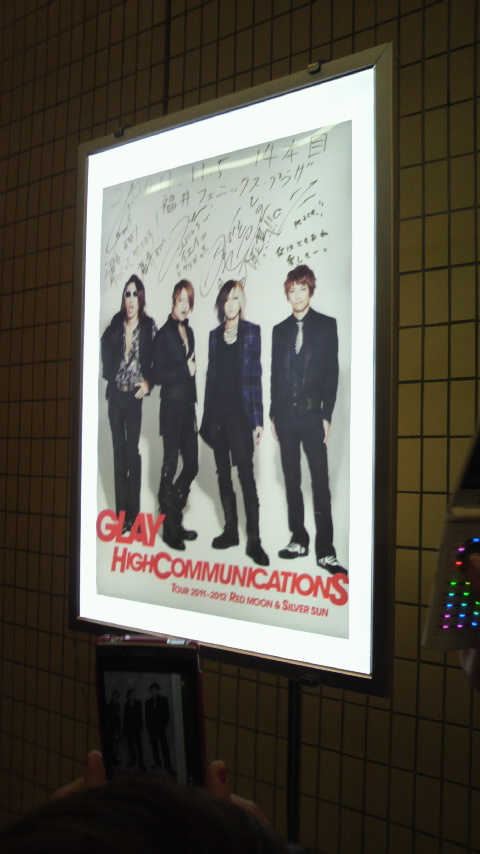 そして初めまして(?) 久々の日記がライブレポという… ツイッターの延長戦って事で。 毎度の如く、あまり覚えてないので、掻い摘んで書いていきます。 今日のライブは地元フェニックスプラザ。 チャリで行っても30分弱という近さ! まぁ親に送ってもらいましたが…(´∀`;) にしても地元のライブは楽すぎる。 開場時間に家を出ても余裕で間に合う。 -開演前- 自分の席は「Bゾーン か列 24番」なんだけど 間違えて27番に座って「違いますよね…?」って言われる始末(ノ∀`)アチャー でも24番は通路側だったせいか暴れやすそうな場所だった。 今では恒例の「まもなく開演します」と同時に始まる手拍子。 後ろを振り向いたら2、3歳ぐらいの女の子が通路のド真ん中で手拍子をやってた(*´∀`*) 01.My Private "Jealousy"(新曲 よく覚えてないけど(←)Real Shadowみたいな曲だった 02.口唇 03.everKrack 04.coyote,colored darkness 05.ASHES-1969- 何このギタリスト大勝利な流れ!ASHESとか久々に聴いたわ TERU「あのさ、最後の「フゥ~」は俺のパートだから!(笑」 ファンに先に歌われるTERUバロスww 06.キリノナカ 07.風にひとり 08.嫉妬 ぬおおおおおお!!嫉妬!!最初のSEで鳥肌がスタンディングオベーション!! 09.都忘れ 10.つづれ織り~so far and yet so close~ 嫉妬とかもそうだったけど、今回幕張のセットリストが影響受けてる気がする。 11.winter,again 12.MAD BREAKER 13.FAME IS DEAD 「お前等が欲しいんだよー!!」で周りの女ヲタ発狂しとったww 14.VERB 15.Ruby's Blanket 16.Runaway Runaway 17.生きてく強さ いい流れだ。 ぶっちゃけRuby's~は今日初めて聞きました。ごめんなさいJIROさん -ENCORE- アンコールの歓声の大きさで曲を決めるよ!ってな感じで 「BEAUTIFUK DREAMER」「pure soul」「カナリヤ」「SPECIAL THANKS」 「THINK ABOUT MY DAUGHTER」「ピーク果てしなくソウル限りなく(なくなくない?」「ACID HEAD」 が流れたんだけど、ビュードリとピークソウルの時に喜んでたの俺だけwww うはww超アウェイww あとACID HEADの時にテンション上がって階段で足ひねったwwテラアホスww 01.カナリヤ 02.THINK ABOUT MY DAUGTHER 03.HIGHCOMMUNICATIONS …MCが長すぎてもう一曲ぐらい演奏できたと思ったのは俺だけでいい。 ENDING~君にあえたら~ なんかPreciousの続編みたいだな、って思った。 次のシングルに収録されるのかね。 その後「THANK YOU SEE YOU AGAIN」と表示され、終演となりまんた。 …特に予定もない為、そのまま帰宅。 ほろよい片手にライブレポを書いてる現在です。 こうして人生初のフェニックスプラザの夜は更けていくのでした。チャンチャン♪ 左)戦利品。金テープ取れただけでも幸せ 中)会場内に貼ってあったポスター。そういやまだ予約してねえや… 右)会場内にあったサイン入りポスター。TERUカッコよすぎるww